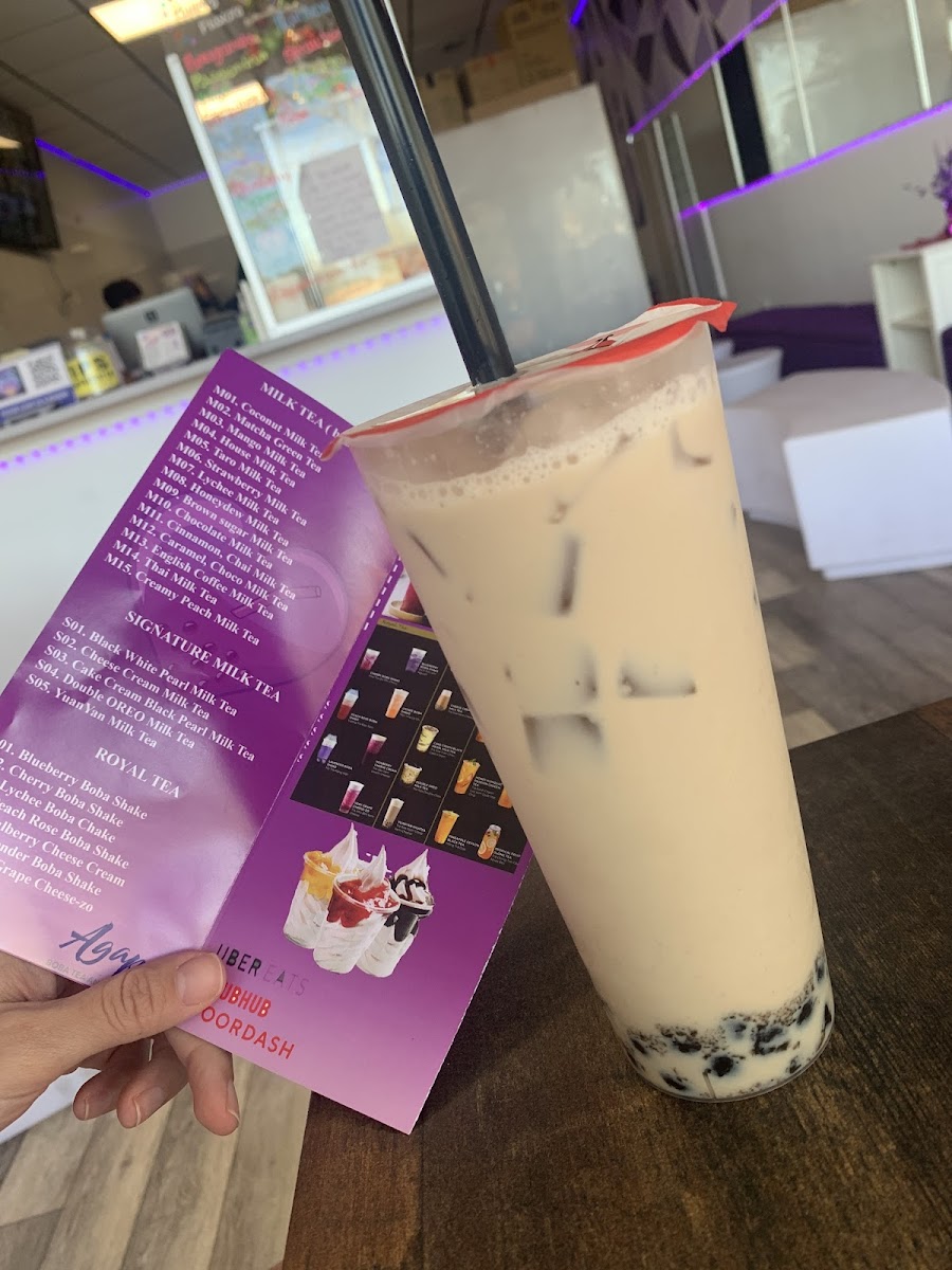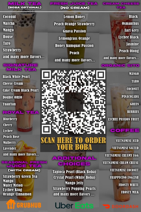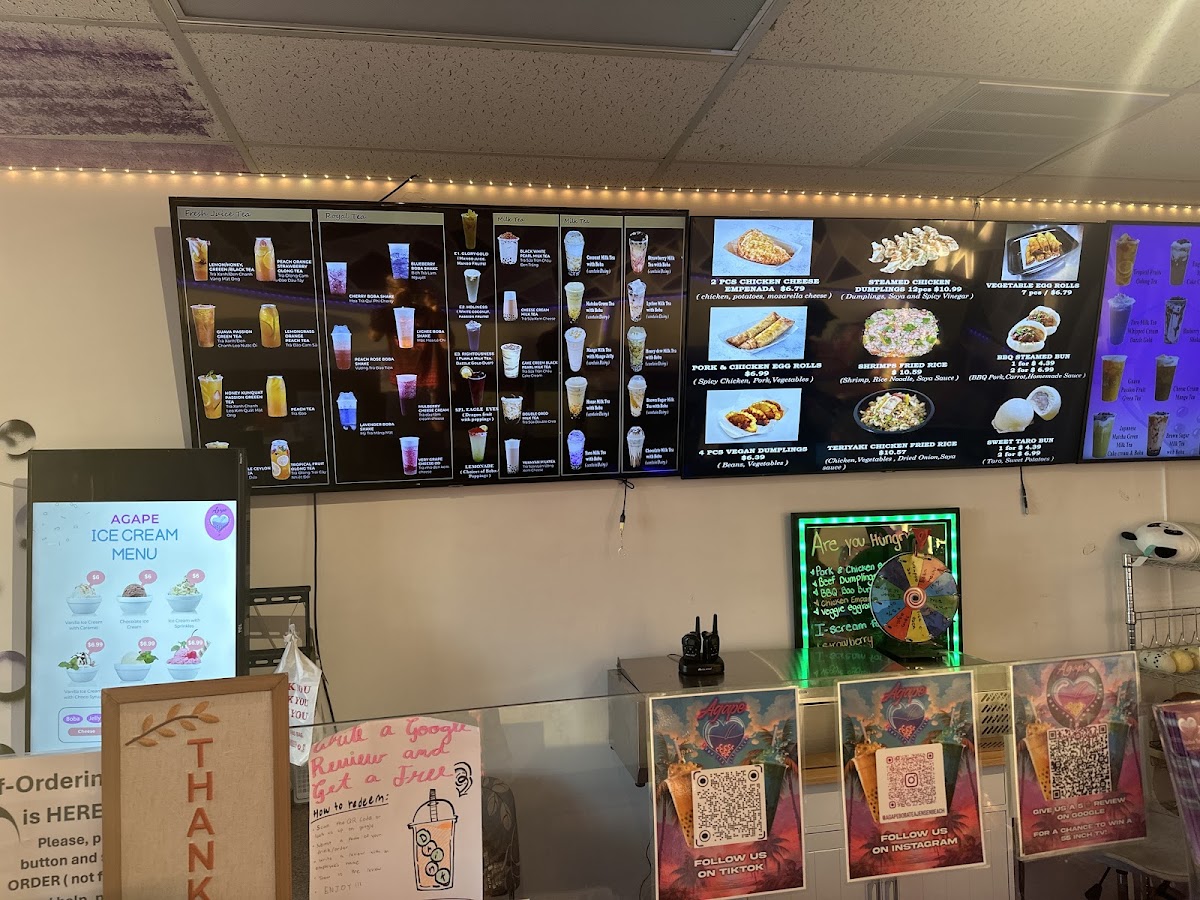 From a reviewer’s perspective, the menu at Agape Boba Tea offers a vibrant and diverse selection that caters to a wide range of tastes, even though specific prices are not listed. The Royal Tea lineup stands out with creative options like Cherry Boba Shake, Lychee Boba Shake, and Lavender Boba Shake, alongside richer choices such as Mulberry Cheese Cream and Very Grape Cheese-Zo. Customization is a highlight, with add-ons like Mango Popping Pearls, Coffee Jelly, and Whey Protein, plus toppings such as OREO Crumble and Crispy Buko Pandan that elevate both texture and flavor. Coffee lovers can enjoy bold selections like Vietnamese Iced Coffee, VNese Cream Cheese Coffee, and VNese Salted Coffee, while fruit tea fans have refreshing picks like Sweet Orange, Guava Passion Fruit Green Tea, and Lemongrass Orange Peach Tea. The Milk Tea and Signature Milk Tea categories deliver comforting classics and indulgent blends, including Honeydew Milk Tea, Double OREO Milk Tea, and Black White Pearl Milk Tea. Meanwhile, the Cream Cheese Tea and seasonal offerings such as Cheese Cream Mango Tea and Lychee King Olong Tea add a premium twist. Overall, the menu impresses with its variety, creativity, and customization options, making it an appealing destination for both adventurous drinkers and those seeking familiar favorites.